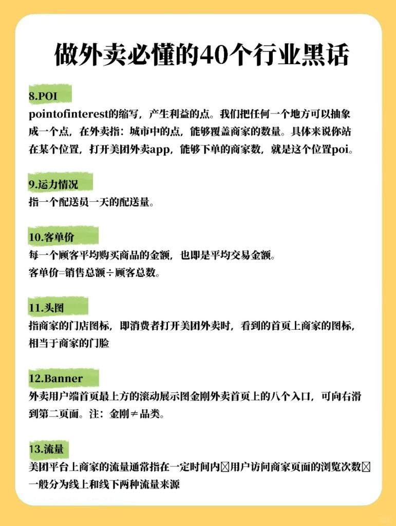 做外卖运营过程,肯定会遇到不少的专业术语和行业黑话